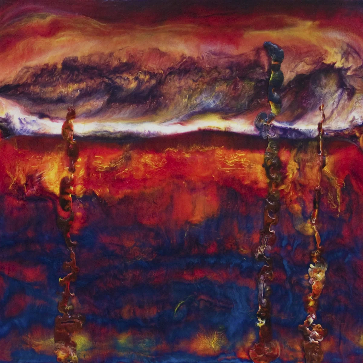 FUSION-SCAPE is an interpretation of horizon lines, an assemblage of color blocks, textured and carved plains. They can be hung as a landscape and often as an abstract. The inspired methodology of creating these hybrids engages exploratory surface tensions to allude to a scape of some kind.